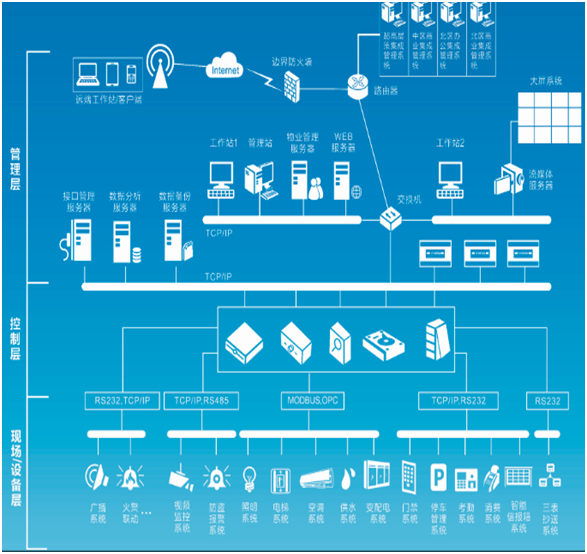 智能建筑管理系統(tǒng)IBMS是在BAS的基礎(chǔ)上更進(jìn)一步的與通信網(wǎng)絡(luò)系統(tǒng)、信息網(wǎng)絡(luò)系統(tǒng)實(shí)現(xiàn)更高一層的建筑集成解決方案,將建筑設(shè)施內(nèi)重要的系統(tǒng),如暖通空調(diào)(HVAC)、能源管理、照明、視頻監(jiān)控、安全防范、消防、生命安全和其它系統(tǒng),集成到統(tǒng)一的平臺,使相關(guān)人員可以在任何地點(diǎn)使用標(biāo)準(zhǔn)的 Web 瀏覽器來監(jiān)測、管理和控制各種設(shè)施、能源、以及安防系統(tǒng)等。接點(diǎn)IBMS具備高彈性架構(gòu),采用開放性平臺,擴(kuò)展型強(qiáng);自主開發(fā)各種主流品牌和協(xié)議的驅(qū)動;通過JOINTT智能網(wǎng)關(guān)分散部署;可替代部分簡單子系統(tǒng)的控制;適用于不同規(guī)模的單棟或多棟建筑。